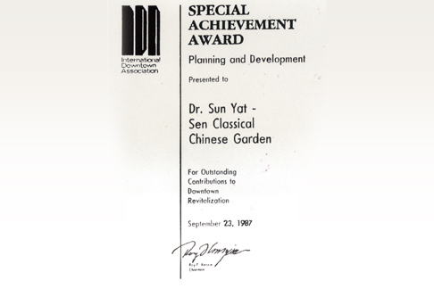1987年 加拿大“逸园”获国际城市协会颁发的“特别成果奖”、“杰出贡献奖”。